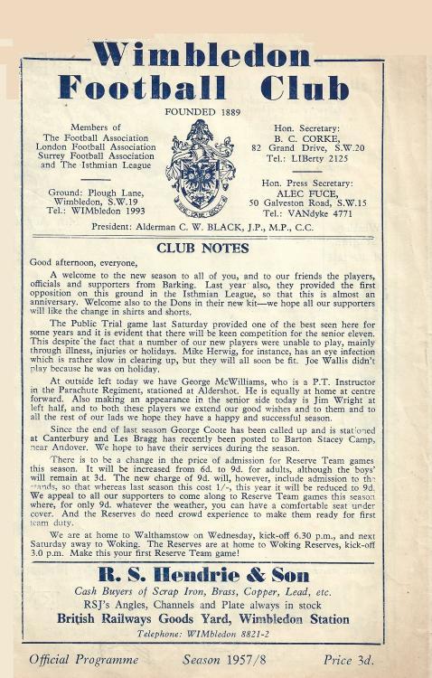 Wimbledon Mike Herwig (?), Brian Martin (?) 2 - 1 Barking
