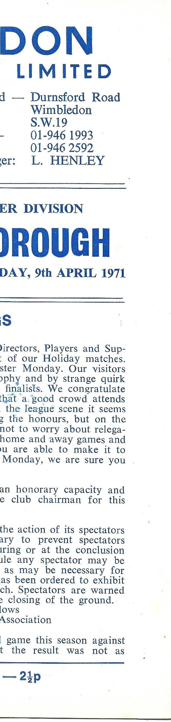 Wimbledon Ian Cooke (?,?,?), Alan Burton (?) 4 - 0 Hillingdon Borough