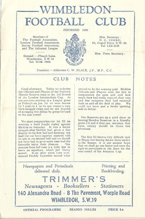Wimbledon (reserves) 0 - 6 Dulwich Hamlet (reserves)