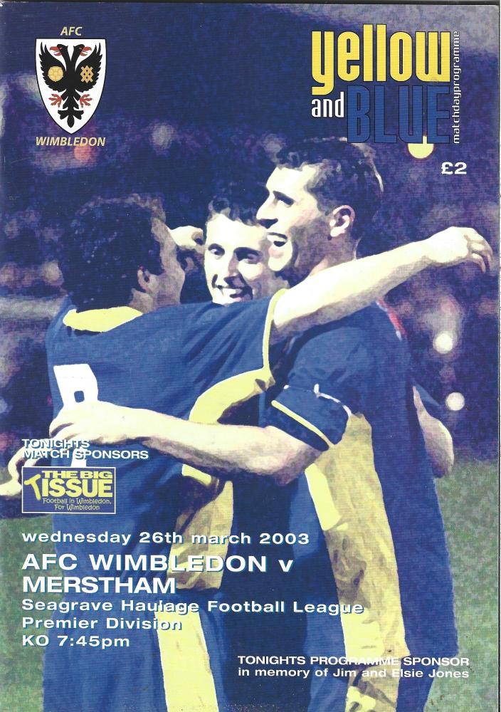 [ --- Simon Bailey, http://afcwimbledon.co.uk/matches/reports/homemerstham260303.html]