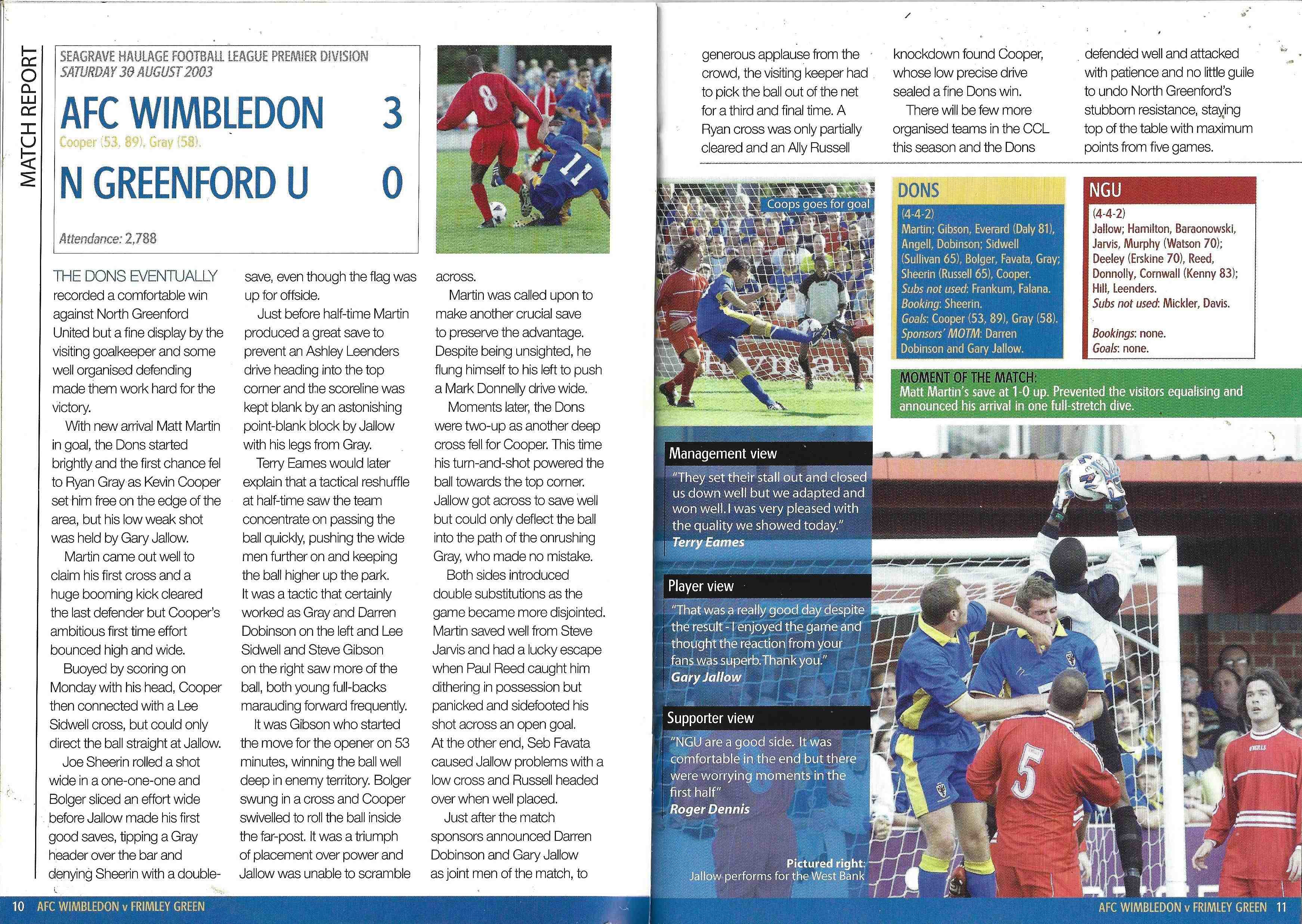 Wimbledon Kevin Cooper #2 (53,90), Ryan Gray (58) 3 (0) - (0) 0 North Greenford United