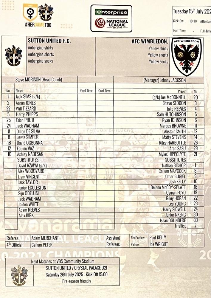 Sutton United Ashley Nadesan (5), Siju Odelusi (90) 2 (1) - (0) 0 Wimbledon