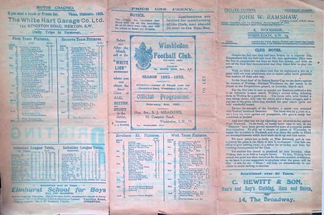 West Norwood 0 - 1 Wimbledon ? Played at Plough Lane