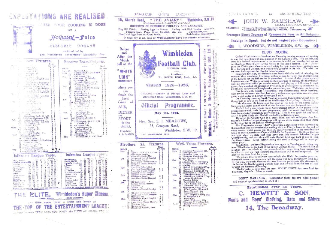 | Dulwich Hamlet ? 6 - 3 Wimbledon ? |
