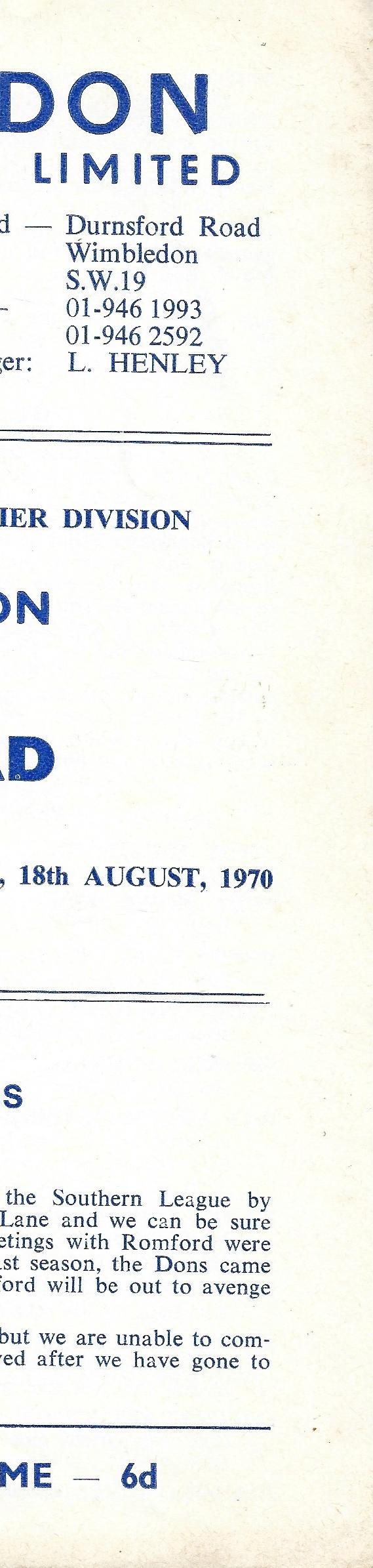 Wimbledon Ian Cooke (?), Paul Hodges (?) 2 - 1 Romford