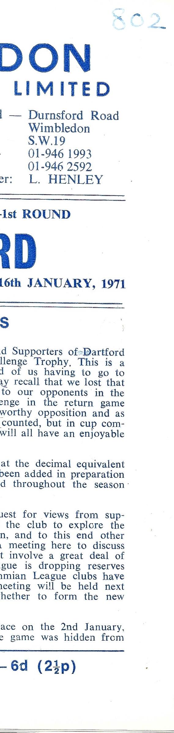 Wimbledon Jimmy Collins (?) 1 - 1 Dartford