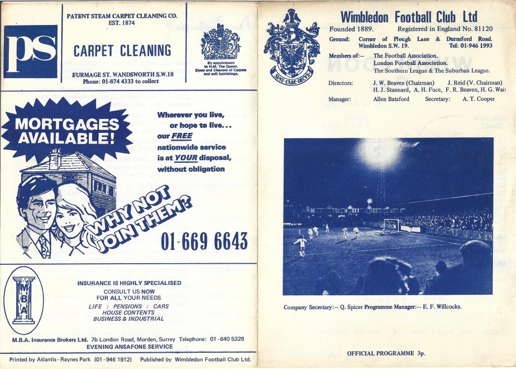 Wimbledon Ian Cooke (?), Billy Holmes (?) 2 (1) - (4) 4 Watford