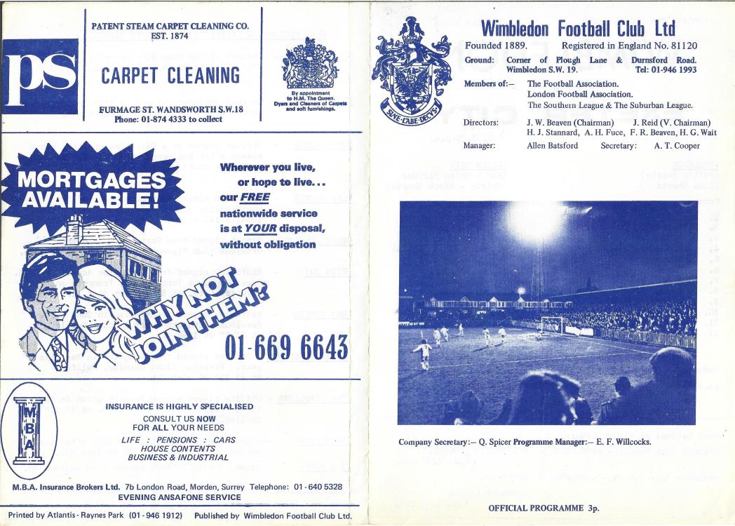 Wimbledon Jeff Bryant (?), Ian Cooke (?) 2 (0) - (0) 0 Exeter City