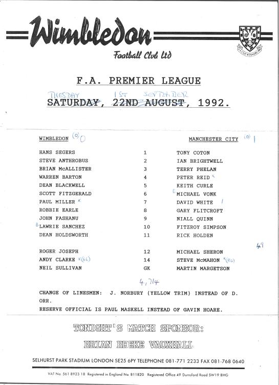 Wimbledon 0 - 1 Manchester City