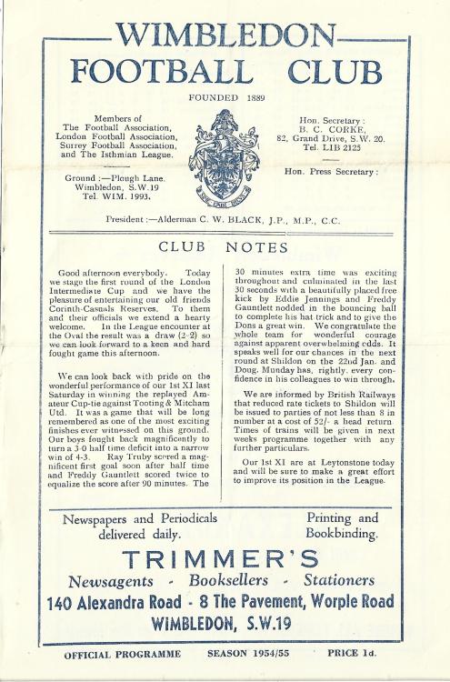 Wimbledon (reserves) ? 1 - 0 Corinthian-Casuals (reserves)