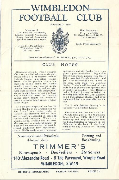 Wimbledon (reserves) ? 2 - 7 Dulwich Hamlet (reserves)