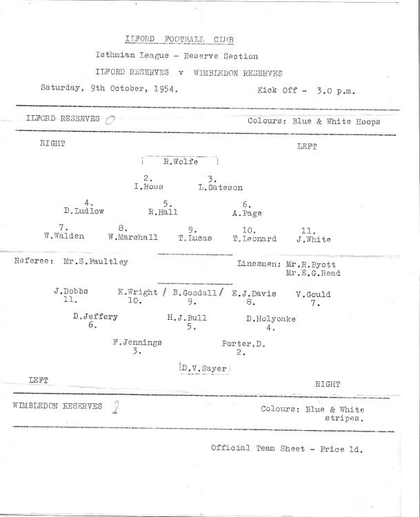 Ilford (reserves) 0 - 2 Wimbledon (reserves)