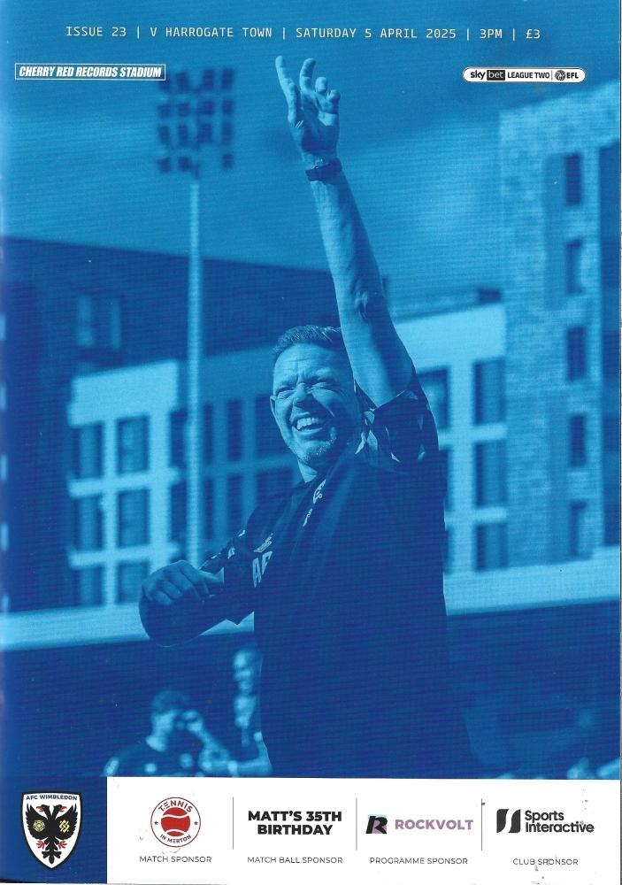 | https://www.afcwimbledon.co.uk/news/2025/april/05/report-dons-vs-harrogate/ https://www.harrogatetownafc.com/news/2025/april/05/afc-wimbledon-1-0-town--second-half-strike-wins-it-for-the-dons-/ |