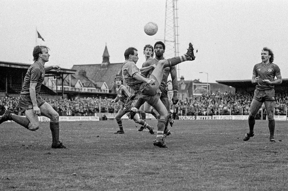 On This Day in 1949 The war damage to Plough Lane's south stand can still be clearly seen as the Dons (in plain shirts) beat Erith and Belvedere 5-0 in a first round London Senior Cup tie. On a pitch covered in pools of water, the evergreen Harry Stannard led the way with a second half hat trick. It turned out to be the start of a run of just two defeats in 20 games that left Wimbledon two victories away from a league and cup double. Sadly, a 0-4 defeat in front of over 12,500 fans at Dulwich's Champion Hill ground cost the Dons the Isthmian League title but a week later they won the Surrey Senior Cup by beating local rivals Tooting and Mitcham United 5-0 in front of 15,230 supporters at Selhurst Park. Click article to enlarge Introduction