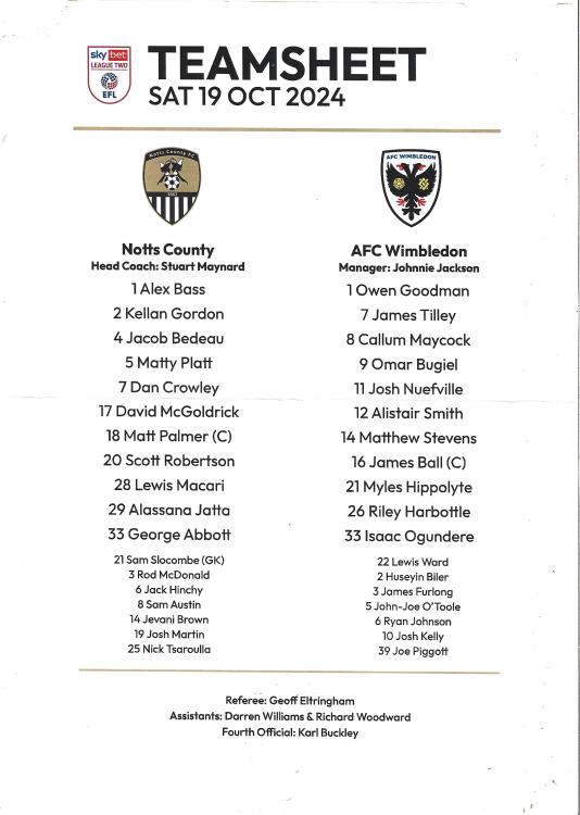 Notts County Matthew Platt (67) 1 (0) - (0) 0 AFC Wimbledon