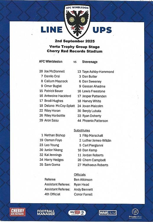 Wimbledon Danilo Orsi (30) 1 (1) - (3) 5 Stevenage