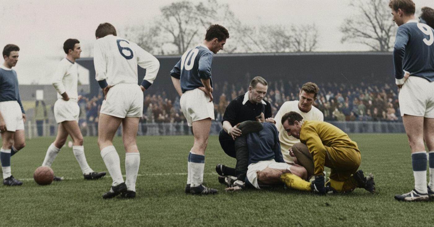 Geoff Hamm looks on as Oxford City goalkeeper Maskell receives treatment in an Isthmian League match at Plough Lane. Eventually overcoming a stubborn City side, the Dons extended their lead over Hendon at the top of the table to three points as they closed in on a hat trick of titles. Frustrated that all his plans to reform the dying amateur game were rebuffed by the officials at other clubs, chairmen Sydney Black was planning an application for the Dons to join the professionals of the Southern League.