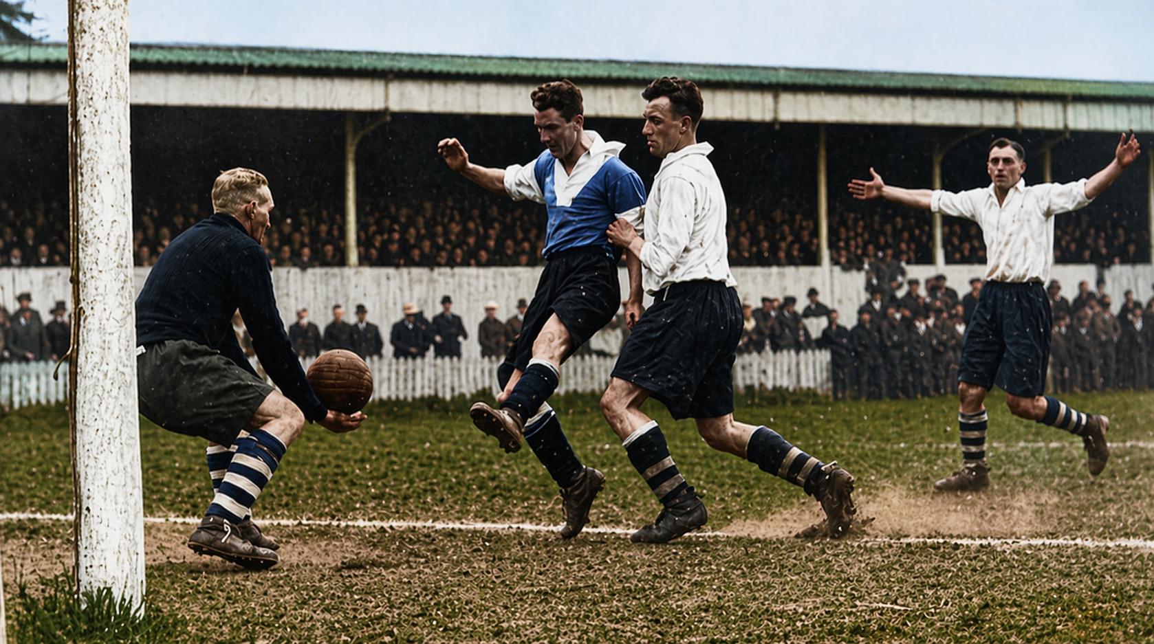On This Day in 1933 Nunhead's England international goalkeeper Eric Mulley blocks a shot from Cyril Harvey as a 2-0 win helps the Dons in their fight to avoid the Isthmian League re-election places. With the Nuns kicking off just a point and a place behind the hosts, who had played two games more, both sides were desperate to come out on top. Despite having won the title in the two preceding years, Wimbledon eventually suffered the indignity of having to apply to stay in the league. Click article to enlarge Introduction